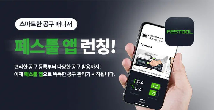 전문 목공인들을 위한 공구를 넘어, 다양한 작업 전문가들 그리고 그들의 작업 환경에 최적화된 전동 공구를 개발해 온Festool은 타협하지 않는 품질로 100년이 넘는 긴 시간 동안 많은 고객들의 신뢰를 쌓아 왔습니다.