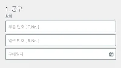 3. 수리가 필요한 공구의 T-Nr/S-Nr을 포함한 수리 요청 내용 및 고장 증상 입력 후 신청하기