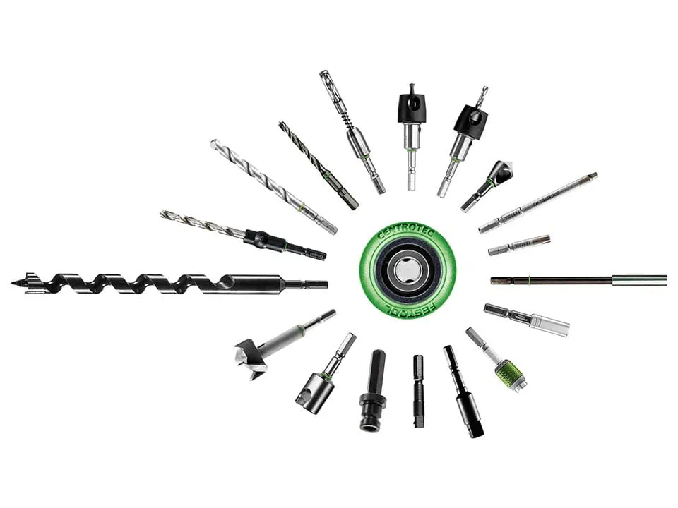 페스툴은 CENTROTEC 인터페이스가 적용된, 다양하고 내구성 높은 드릴 공구들을 제공합니다. CENTROTEC 척은 드릴에 간편하게 장착할 수 있어, 작업 용도 별로 필요한 드릴 공구로 쉽고 빠르게 만들 수 있습니다. 작은 가구 작업에서부터 큰 지붕에서의 작업까지! CENTROTEC 척 사용 드릴과 함께라면 어떤 작업도 효율적으로 완벽하게 수행할 수 있습니다. 다양한 비트들과 CENTROTEC 센터링 비트, 비트 홀더 등이 포함되어 있는 실용적인 드릴 액세서리 세트로 언제나 깔끔한 작업 환경을 만들어 보세요.